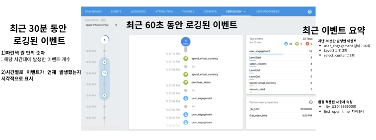 - Firebase Console → Analytics → DebugView 메뉴 선택