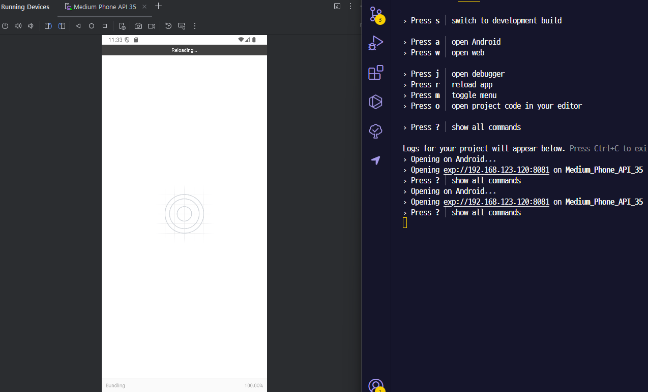 - 에뮬레이터에서 Expo Go 앱은 개발 서버에 연결해 번들을 실행한다.